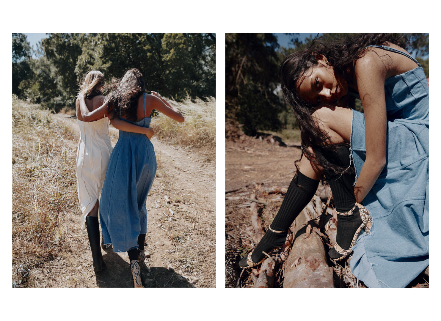 Maria is wearing denim dress by Stru.Story vintage necklace and earrings knee-length socks Max Mara shoes Mango