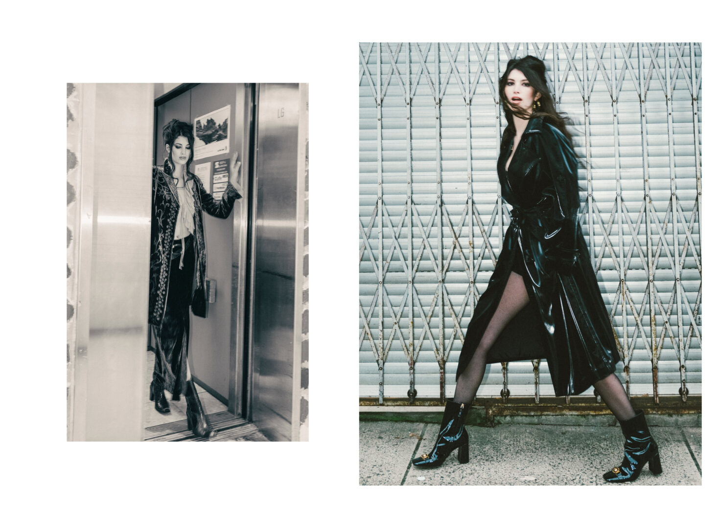 Right: Trench coat, YSL. Boots, Versace from Turnabout Luxury Resale
