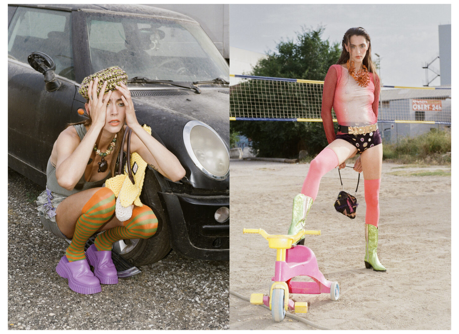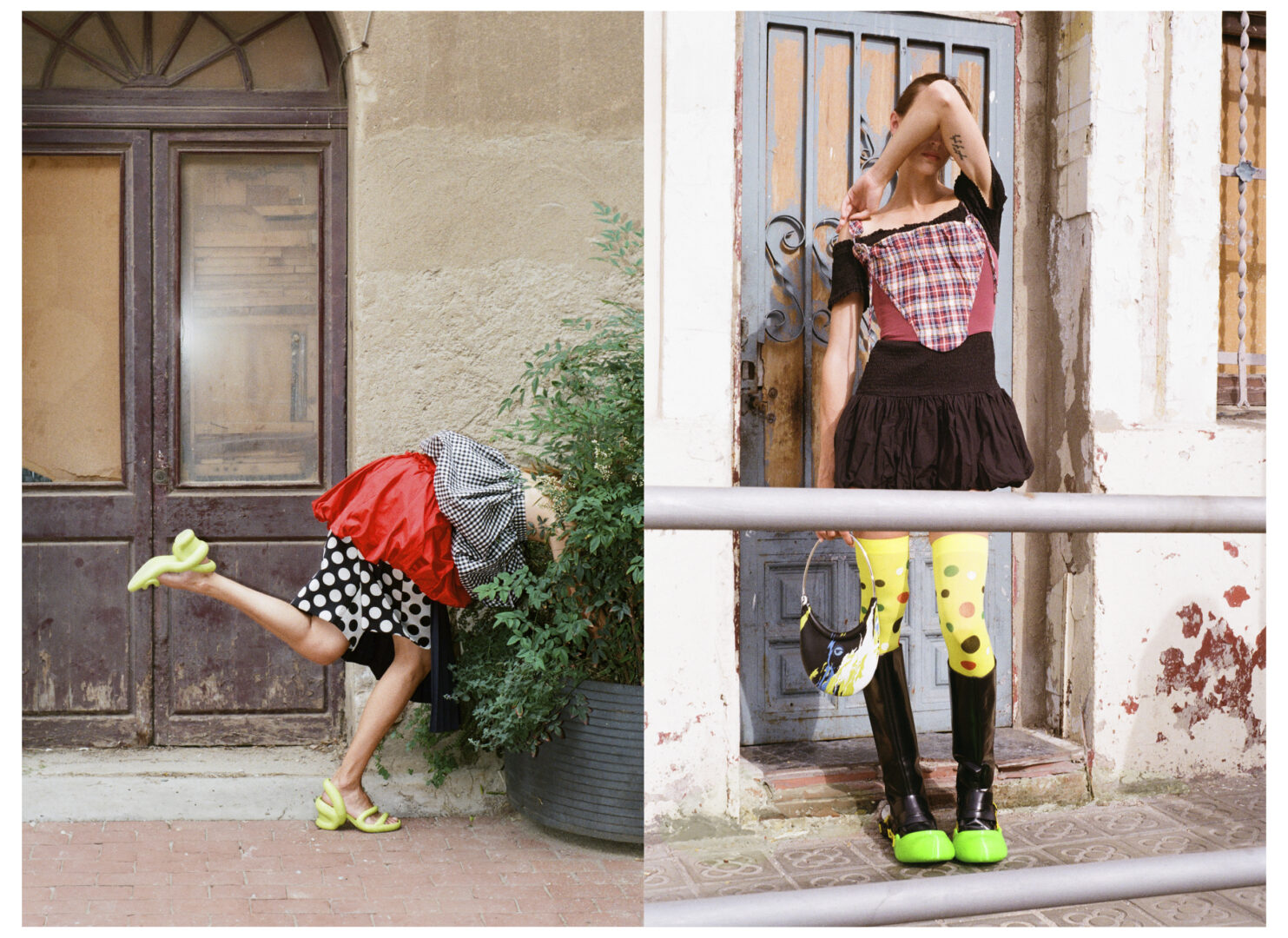LEFT: OTTOLINGER NECKLACE MAM EARCUFF GANNI SKIRT SIMONE ROCHA SKIRT CHARLES JEFFREY LOVERBOY SKIRT CAMPER SHOES MARNI BAG