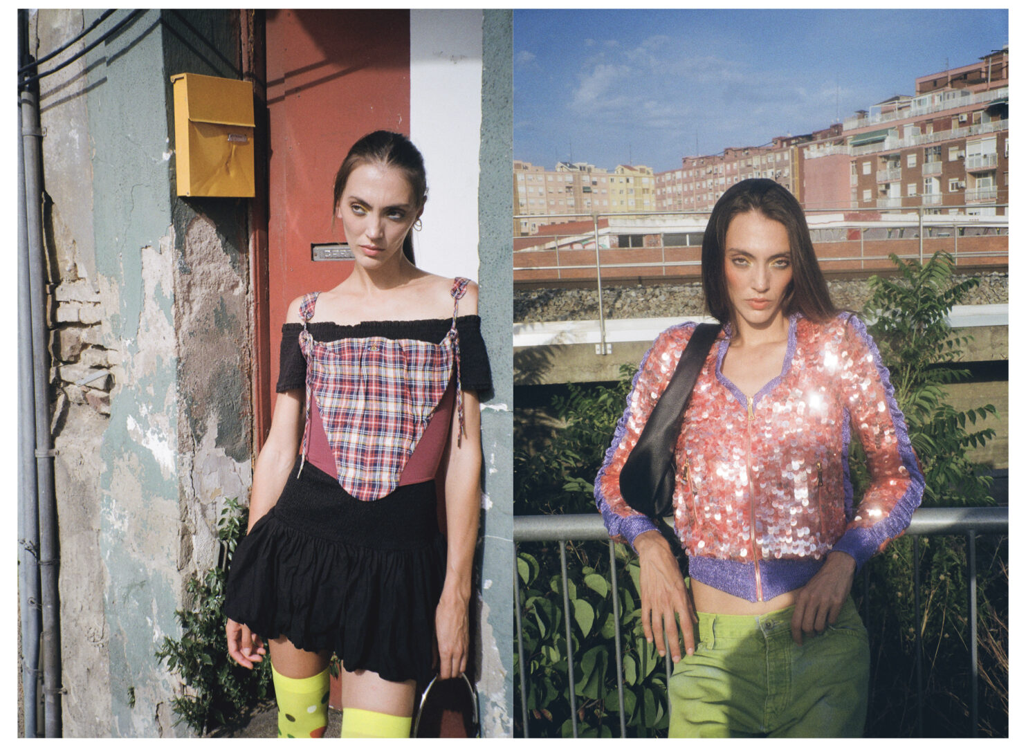 RIGHT: CUSTO BARCELONA JACKET COURREGES TOP RUBBEARTH PANTS BIMBA Y LOLA HEELS VIVIENNE WESTWOOD BAG STYLYST’S EARRINGS