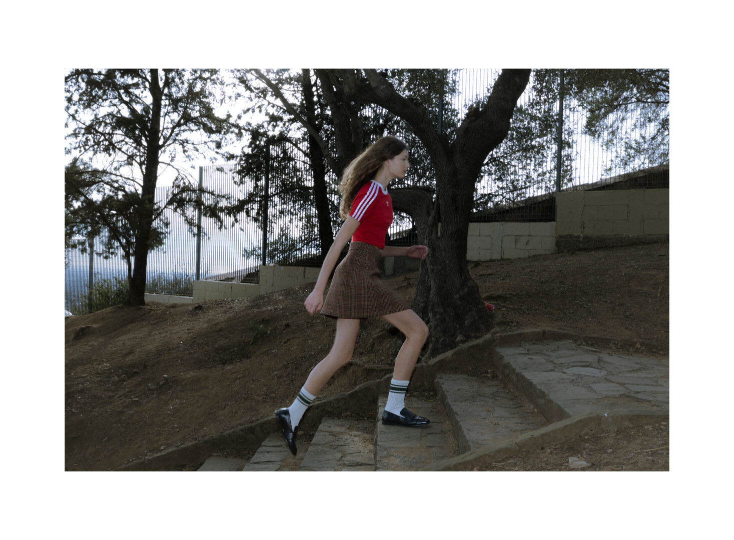 Adidas Originals crop t shirt, Arket Skirt, Uniqlo Socks, COS Loafers
