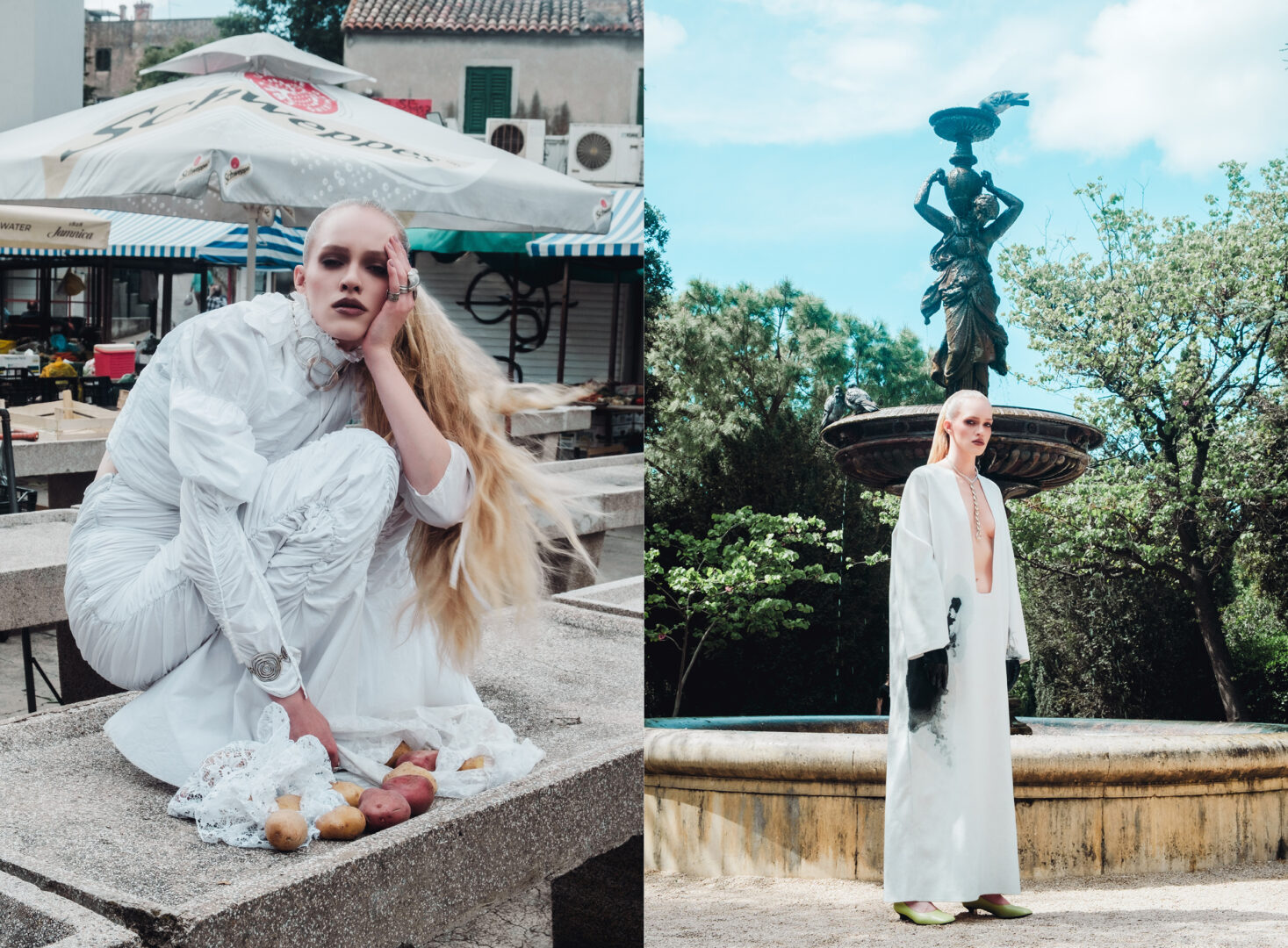 right: dress by young Polish designer Aleksandra Jendryka @aleksandra.jendryka and shoes by Peter Kaiser @peterkaiser_official – an exclusive German brand with a tradition dating back to 1838.