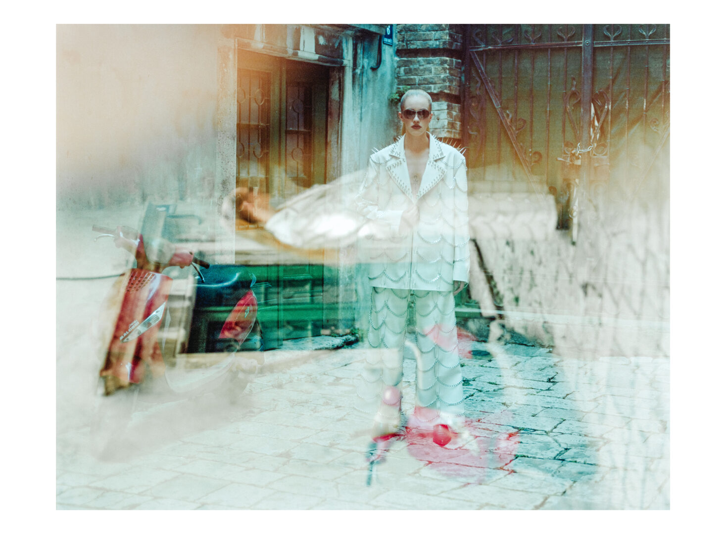 suit is from the collection of Karina Sobol @motylolapka, the shoes are by Hugo Boss @boss, and the sunglasses are by the legendary Polish designer Arkadius @arkadiusofficial.