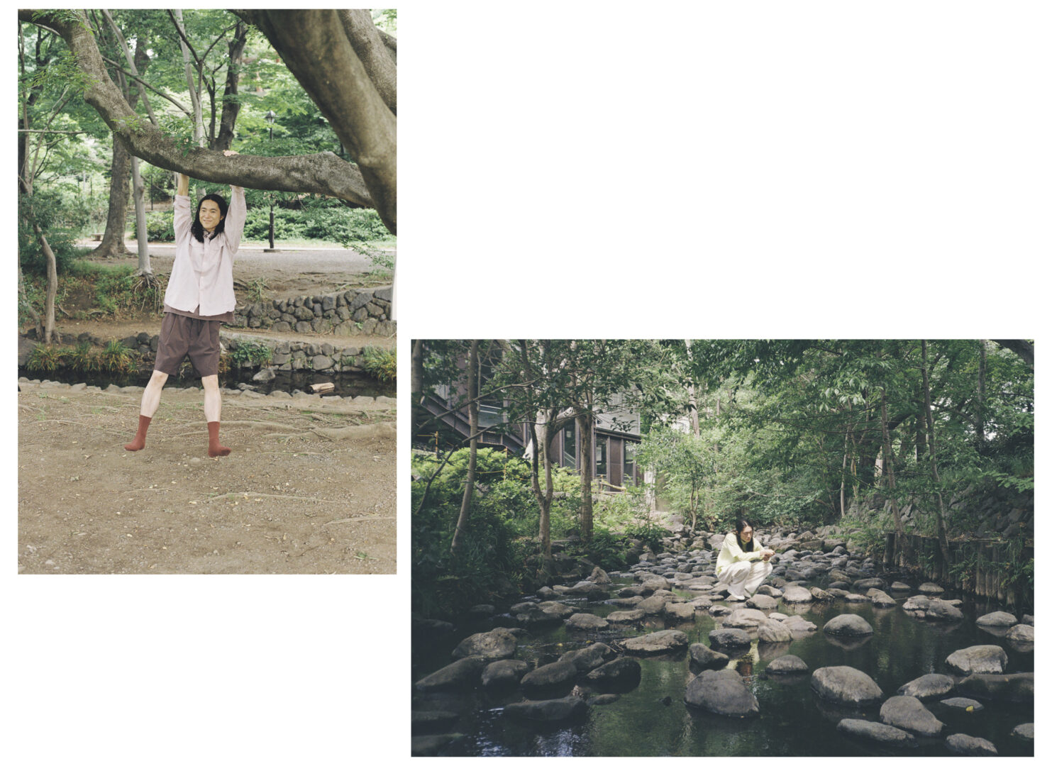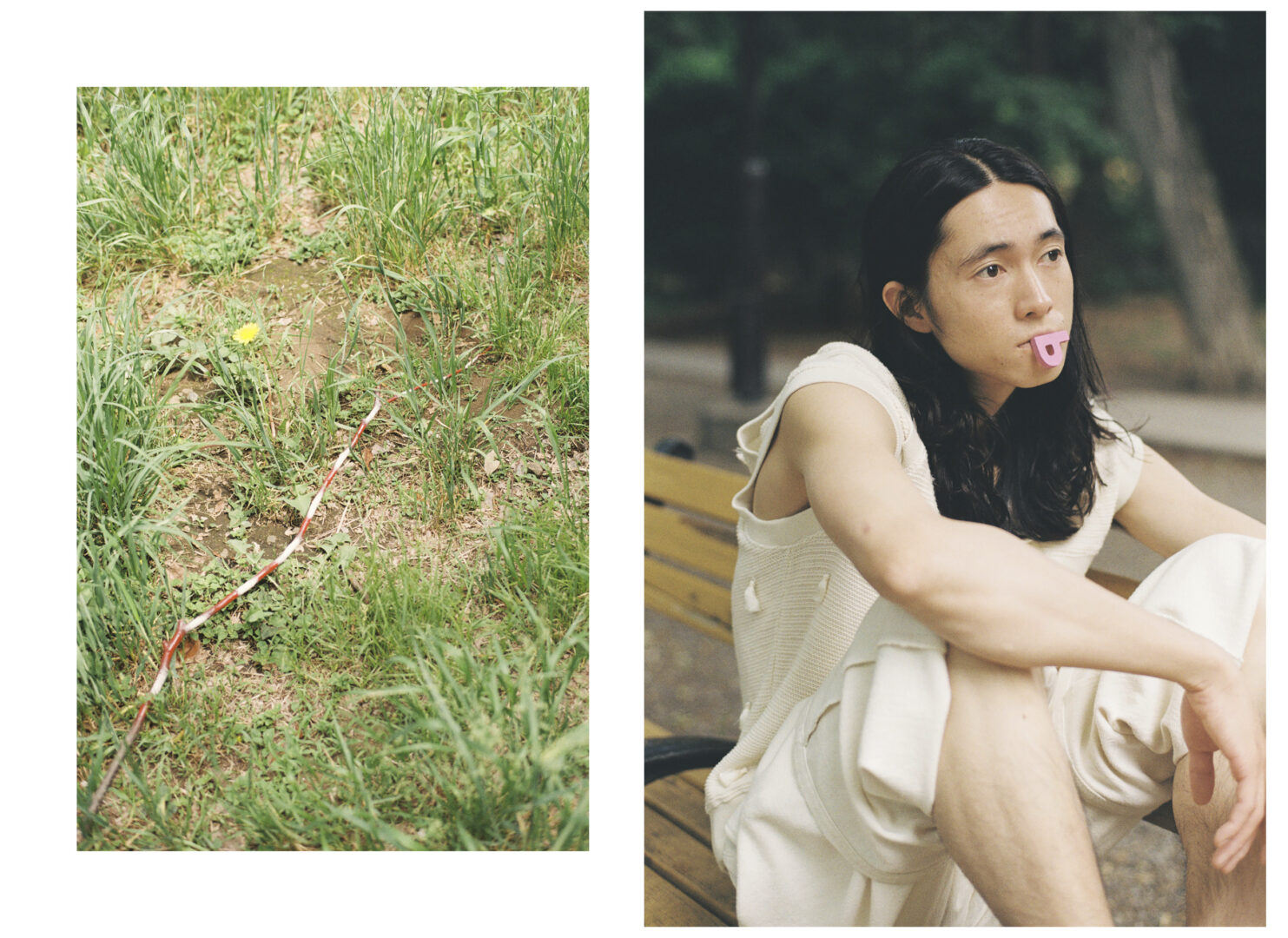 right: Tops & Inner tops KICS DOCUMENT. Trousers KHONOROGICA Shoes YOAK
