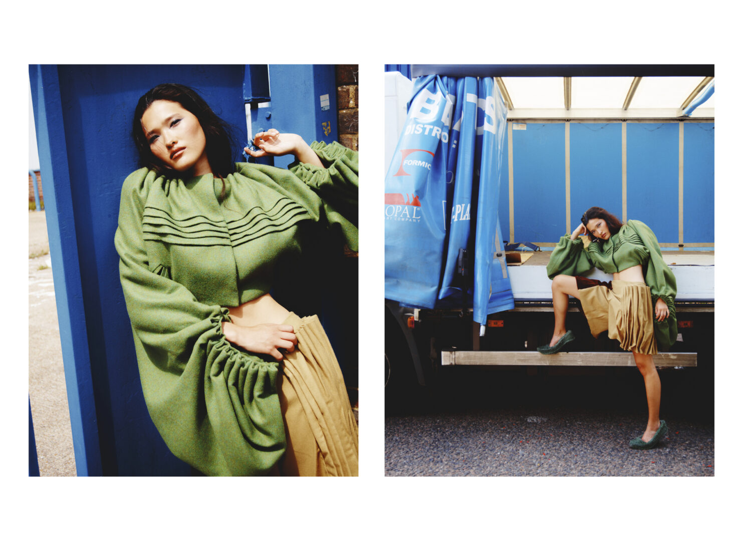 Jacket & Skirt: Holly Laidler Shoes: Jean Paul Gaultier