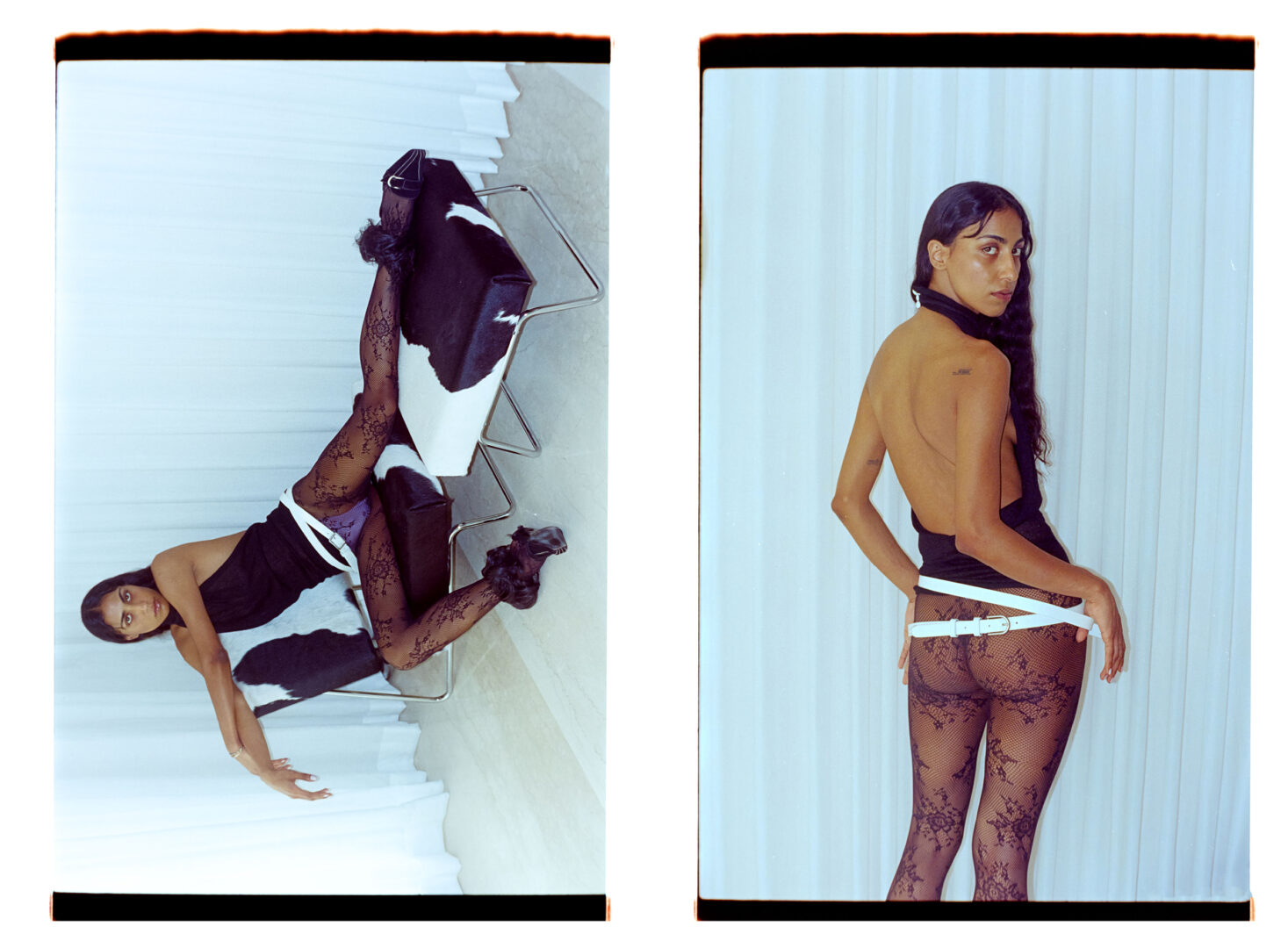 Knit halter: Meja Jurgelaityte, Tights: Stylist owned, Belts: Stylist owned, Shoes: vintage