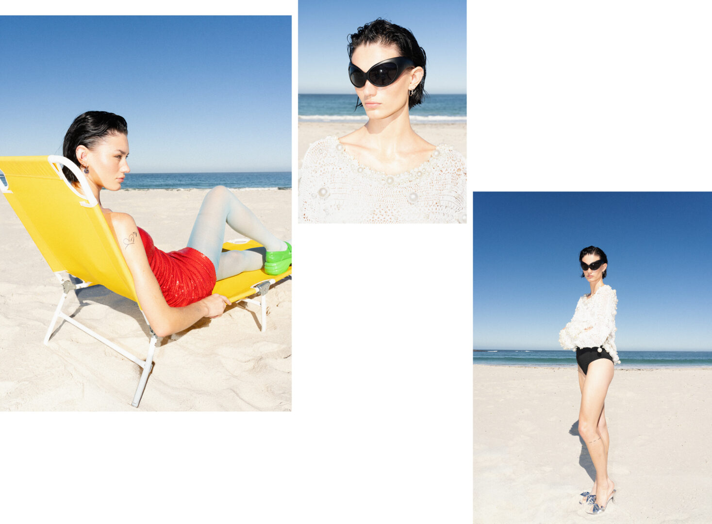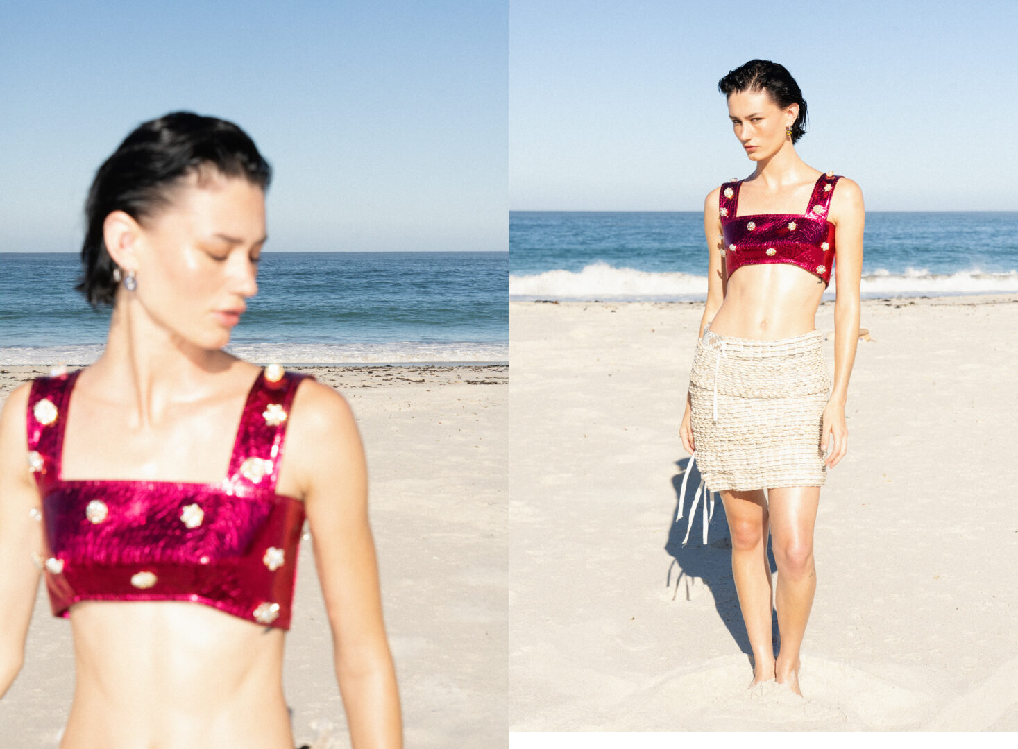 right: Sunglasses: Stylist’s Own, top: Masango, Bottoms: H&M, Shoes: Zara