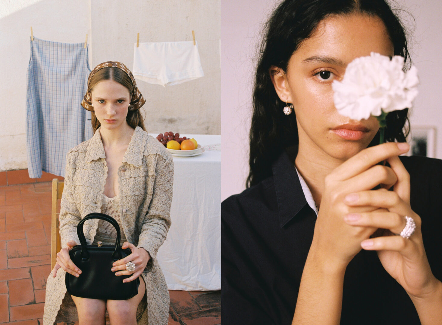 right: Shirt VÍCTOR VON SUAH, earrings CHARLOTTE LOCAL ARCHIVE.